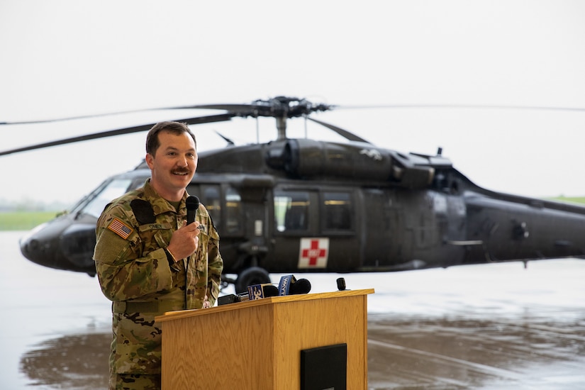 Soldiers from Kentucky Army National Guard’s MEDEVAC detachment held its departure ceremony with friends and family in attendance at the Army Aviation Support Facility on Boone National Guard Center in Frankfort, Ky. on April 25, 2025.